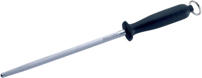 - Hold the sharpening steel vertically firmly in your hand. Hold the knife firmly by the handle.